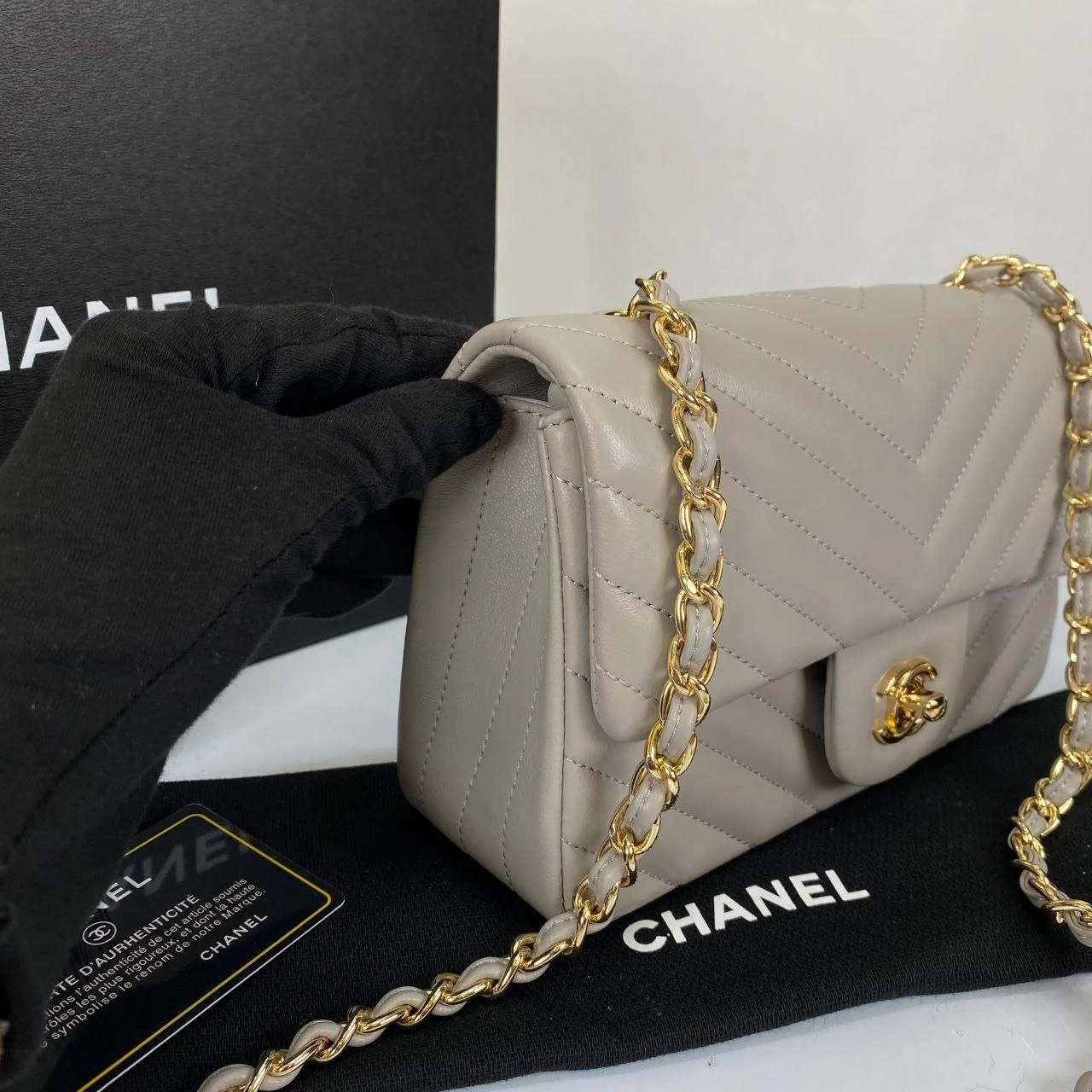 1.55 Chevron Mini Flap Bag - Beige