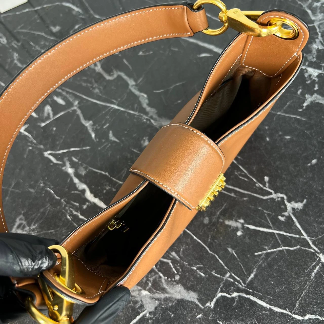 - Gold-tone hardware