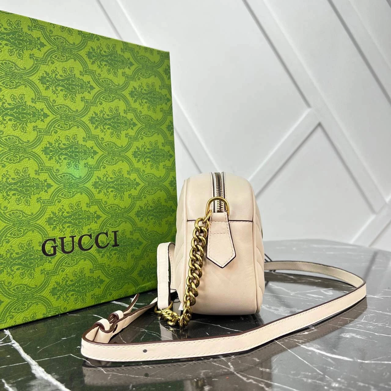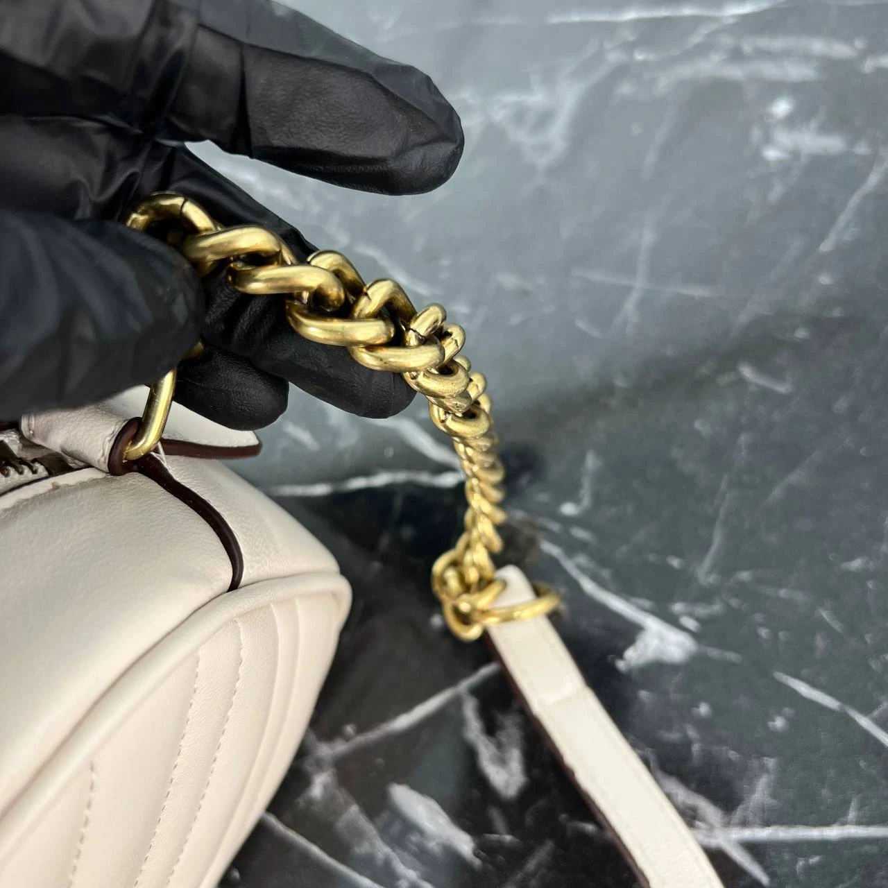 Black Quilted New Medium Bag - White & Gold