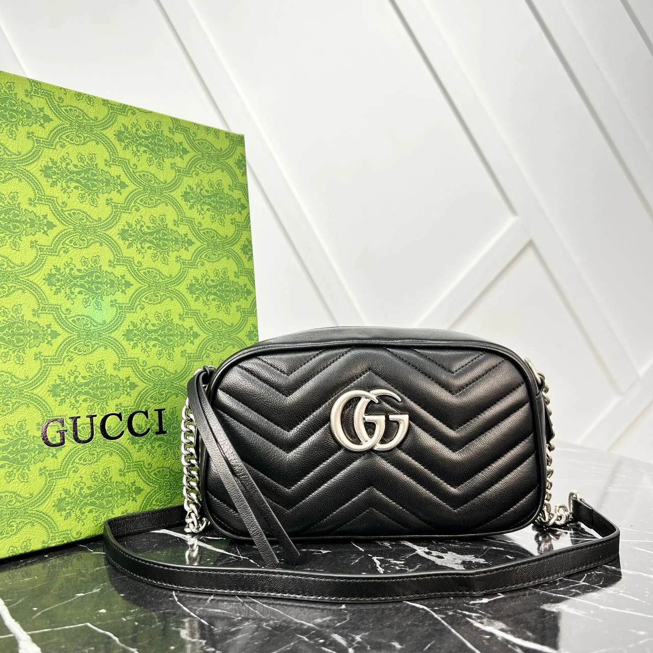 Black Quilted New Medium Bag - Gray & Gold